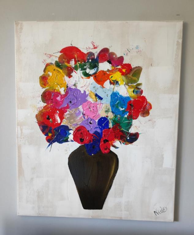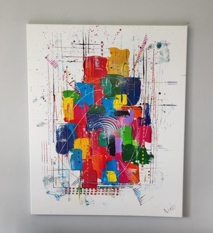 Tableau abstrait multicolore réalisé en peinture acrylique au couteau sur toile coton et châssis en bois Dimensions 50 x 60 un vernis protège l’oeuvre 65€